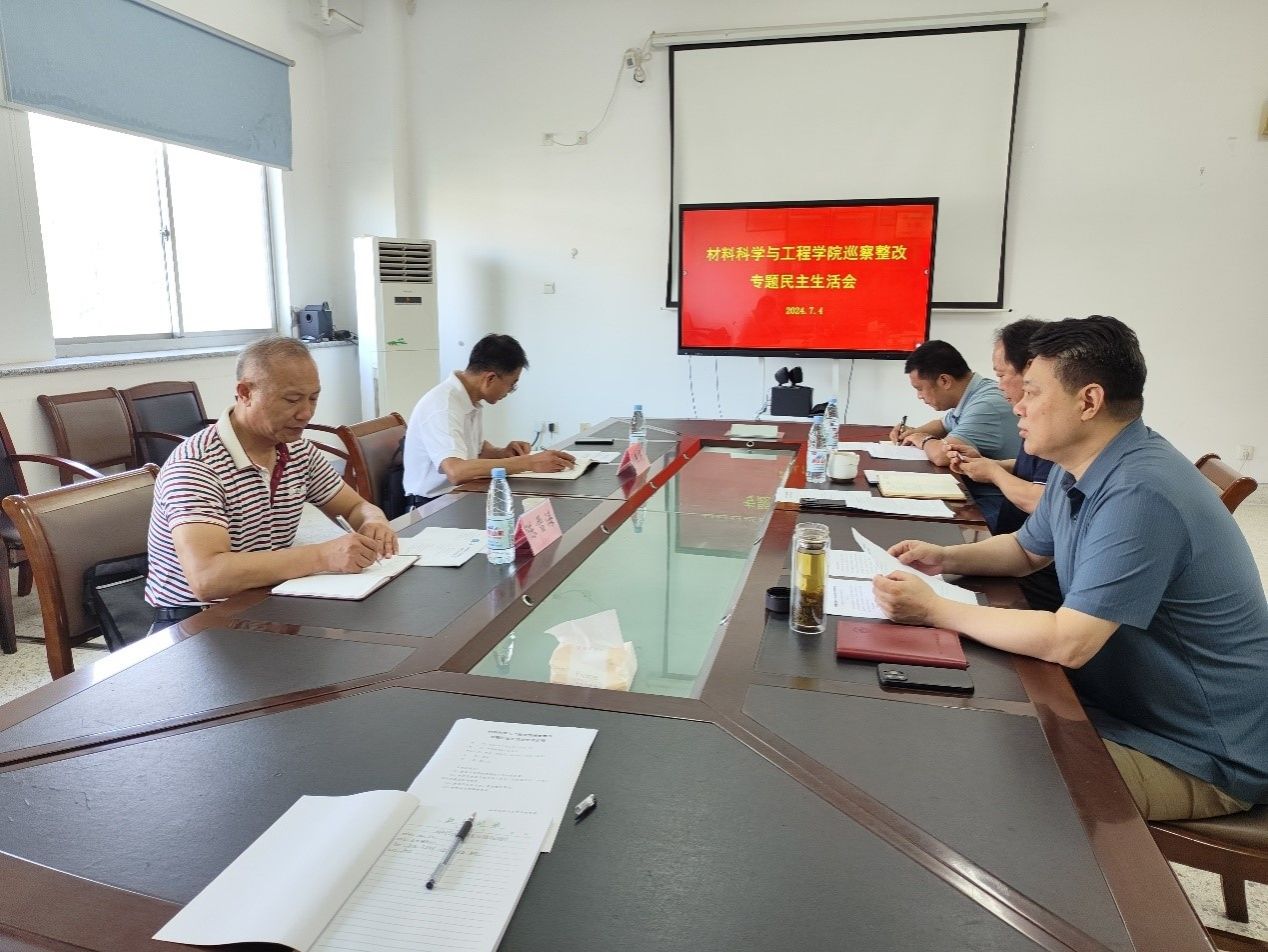 7月4日上午,材料学院在知达楼314会议室召开学院党委领导班子巡察整改专题民主生活会。校纪委审查调查处处长陈雪海,党委组织部组织科科长王源参会督导。会议由学院党委书记唐浩主持,学院领导班子成员参加。学院党委副书记朱凌以书面形式提交材料进行汇报。